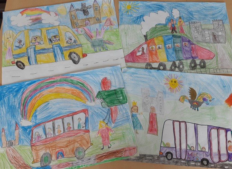 Malwettbewerb 2026 für Volksschulen zum Thema "Mit Bahn und Bus ab ins Weltall!"